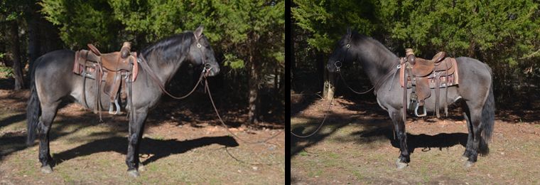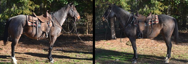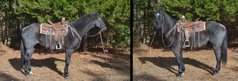 JACKIES DANDY ROAN, Gunsmoke, a 12 year old, 15.3 hand, ranch-broke, stocky, 1200 pound, Blue Roan, American Quarter Horse Association registered gelding has been sold to Dalmon from Bath, NC. Thanks!
