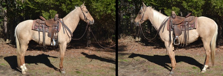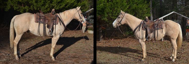 MACS DOCEN, Mac, a 6 year old, 15 hand, stocky, ranch-broke, Golden Palomino, American Quarter Horse Association registered gelding has been sold to Dez from Southern Pines, NC. Thanks!