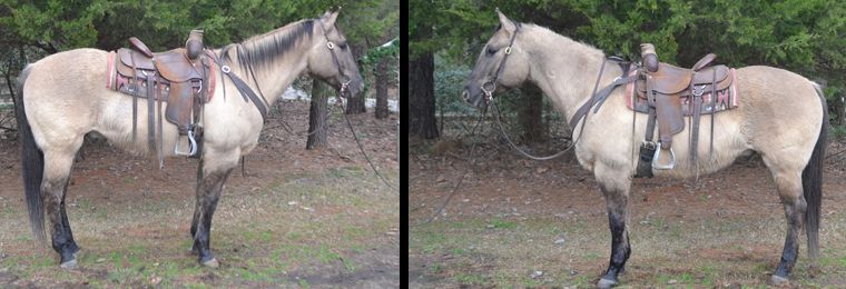 King, a 8 year old, 15 hand, stocky, ranch-broke, Grulla Quarter horse gelding has been sold to Judy from Raleigh, NC. Thanks!