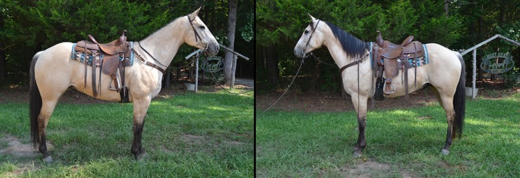 BISBEES A HOTTIE, "Bisbee", a 7 year old, 16.3 hand, 1300 pound, stocky, Buckskin, American Quarter Horse Association registered gelding has been sold to Pamela from Asheville, NC. Thanks!