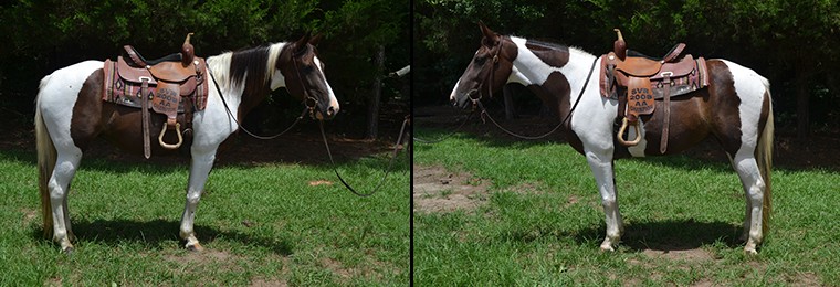 CELINES PRESCRIPTION, "Celine", a 11 year old, 15 hand, ranch broke, Bay, American Paint Horse Association registered mare has been sold to Dawson from Farmville, NC. Thanks!