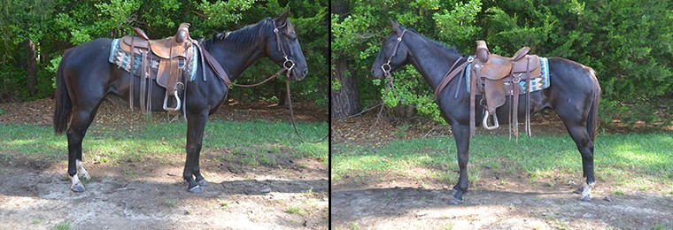 Stack, a 5 year old, 14.2 hand, ranch broke, Black, Quarter horse gelding has been sold to Kelly from Montana. Thanks!