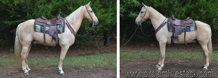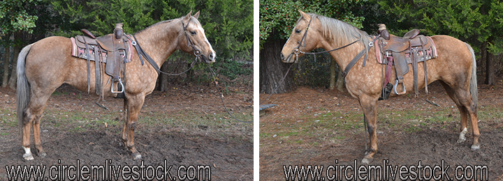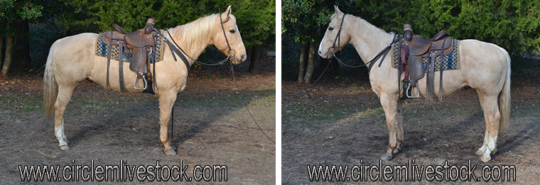 Jingle, a 10 year old, 15 hand, stocky, ranch-broke, Palomino, Quarter horse gelding has been sold to Pamela from Willow Springs, NC. Thanks!