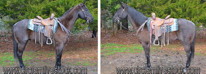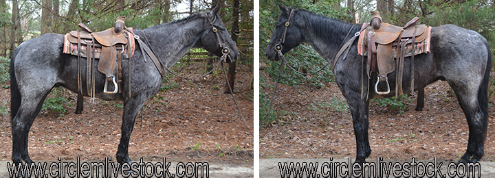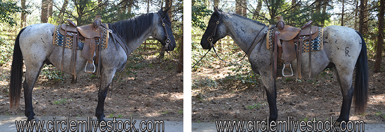 Shadow, a 11 year old, 15.2 hand, stocky, ranch-broke, Blue Roan, Quarter horse gelding has been sold to Lisa from Burlington, NC. Thanks!