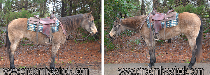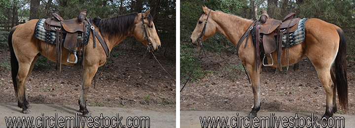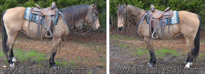 Buttercup, a 12 year old, 14.3 hand, ranch-broke, Buckskin, Quarter horse mare has been sold to William from Zebulon, NC. Thanks!
