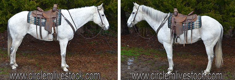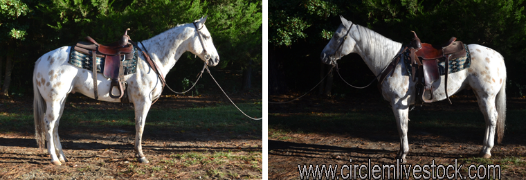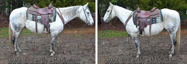 Chrome, an 8 year old, 14.3 hand, stocky, ranch-broke, Dapple Gray, Quarter horse gelding has been sold to Cole from Southern Pines, NC. Thanks!