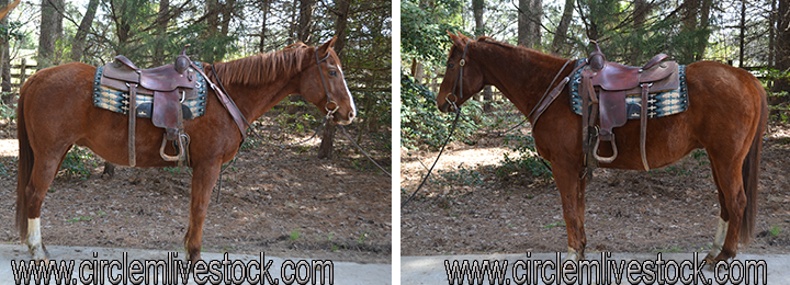 Rip, a 11 year old, 14.3 hand, stocky, ranch-broke, Bay, Quarter horse gelding has been sold to Tim from Columbia, NC. Thanks!