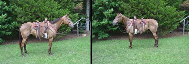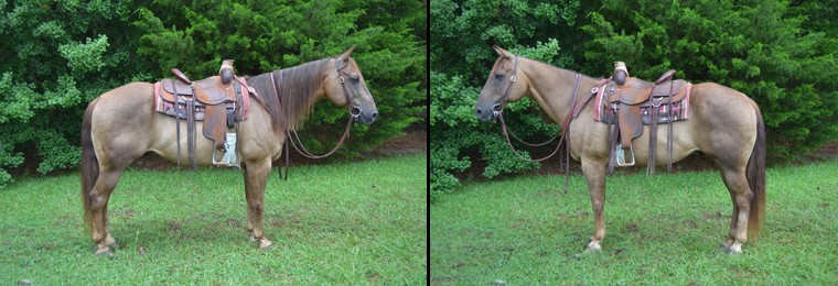 Arrow, a 8 year old, 15.2 hand, stocky, ranch broke, Buckskin, Quarter Horse gelding has been sold to Karmen from Newland, NC. Thanks!