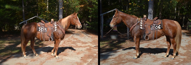 Laredo, a 12 year old, 15.2 hand, ranch broke, Chestnut, stocky, Quarter Horse gelding. Has been sold to Joanne from Society Hill, NC. Thanks!