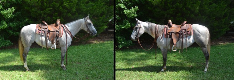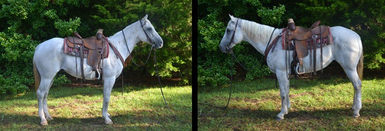 Ceaser, a 12 year old, 15 hand, stocky, ranch broke, Gray, Quarter horse gelding has been sold to Laurie from Robbins, NC. Thanks!