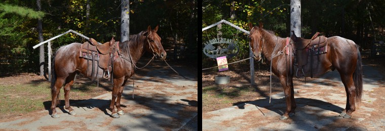 Strawberry, a 11 year old, 14.3 hand, stocky, ranch broke, Red Roan, Crossbred gelding has been sold to Blayni from Troy, NC. Thanks!