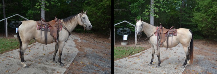 HEART TO DANCE, "Butter", a 15 year old, 15.2 hand, stocky, Buttermilk Buckskin, American Quarter Horse Association registered mare & registered in the North American Equine Ranching Information Council (NAERIC) Incentive Program, has been sold to Jeff from Boonville, NC. Thanks!