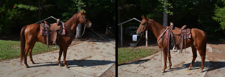 Maverick, a 12 year old, 14.3 hand, stocky, Chestnut, Quarter horse gelding has been sold to Heather from Willow Springs, NC. Thanks!
