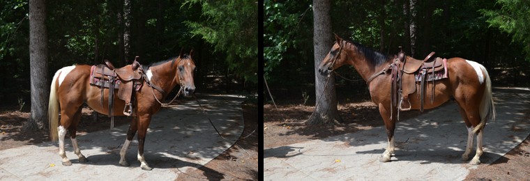 Teddy, a 12 year old, 14.3 hand, stocky, ranch broke, chestnut, Paint horse gelding has been sold to Jerome from Four Oaks, NC. Thanks!