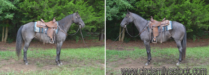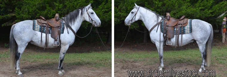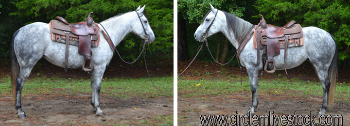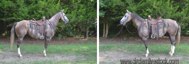COWBOYS ONE DIAMOND, Gem, a 7 year old, 15.2 hand, stocky, 1250 pound, ranch-broke, Steel Gray, American Quarter Horse Association registered gelding has been sold to Stephen from Williamston, NC. Thanks!