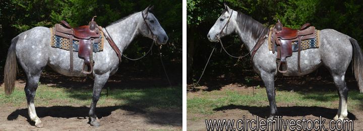 Flint, a 12 year old, 15 hand, stocky, ranch-broke, Gray, Quarter horse gelding has been sold to Elizabeth from Fleetwood, NC. Thanks!