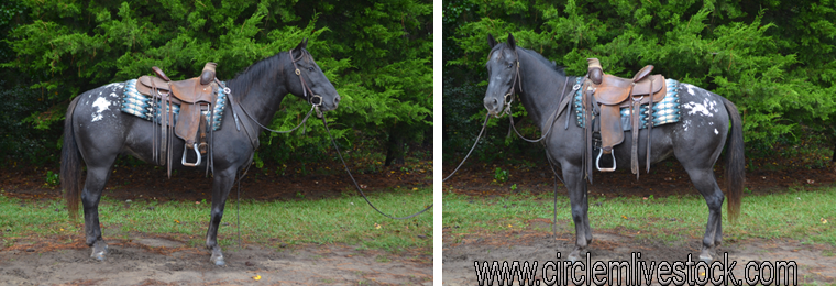 Spade, a 8 year old, 14.2 hand, stocky, ranch-broke, Black & White, Appaloosa gelding has been sold to Gracie from Baham, NC. Thanks!