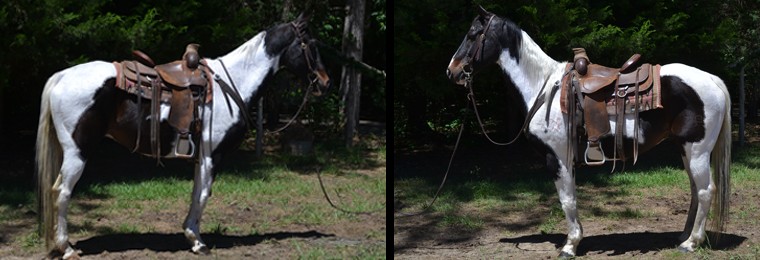 Breeze, a 9 year old, 15 hand, ranch-broke, Black & White Overo, Paint horse gelding has been sold to Carol from Denton, NC Thanks!