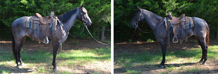 DREWS BLUE JOKER, Joker, a 4 year old, 15 hand, stocky, ranch-broke, Blue Roan, American Quarter Horse Association registered gelding has been sold to Ken from Southern Pines, NC. Thanks!