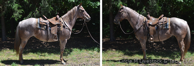 Rawhide, a 11 year old, 15 hand, stocky, ranch-broke, Red Roan, Quarter horse gelding has been sold to Michael from Burgaw, NC. Thanks!